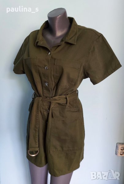 1️⃣ . L / 2XL - "Denim & Co.". Цената е крайна 59,99лв / 30 евро. Марков дънков гащеризон в сигнално зелен цвят. Моделът се вижда добре, материята не е еластична, размерът се напастване на талията с широк колан, нов е, без дефекти и етикет, една бройка.