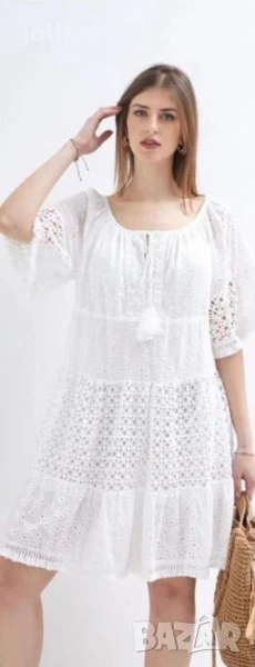 Дамски летни памучни рокли с дантела в стил бохо, С подплата, цени от 44 до 50 лв