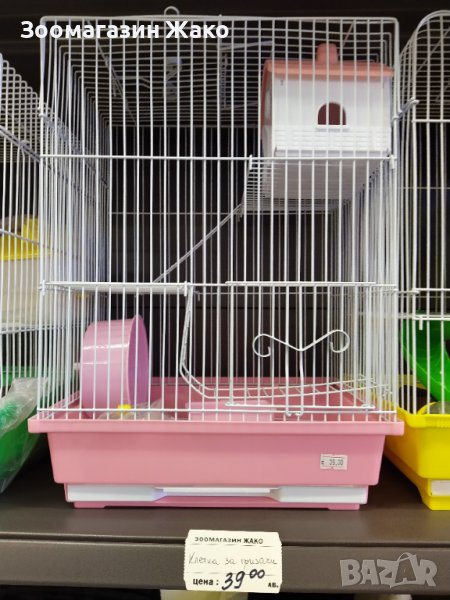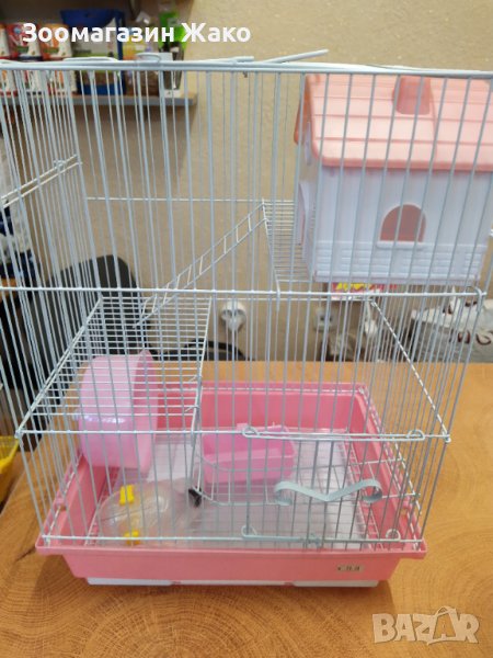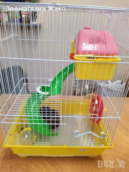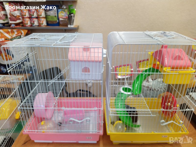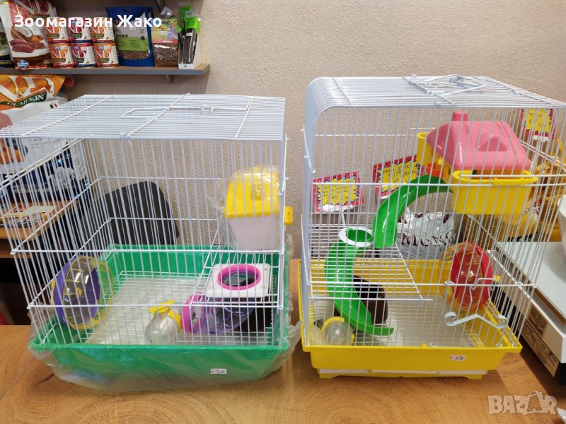 клетки за малки гризачи,напълно оборудвани-хранилка,поилка,къщичка,пързалка или стълбичка,колело,тарелката се издърпва-лесно почистване.