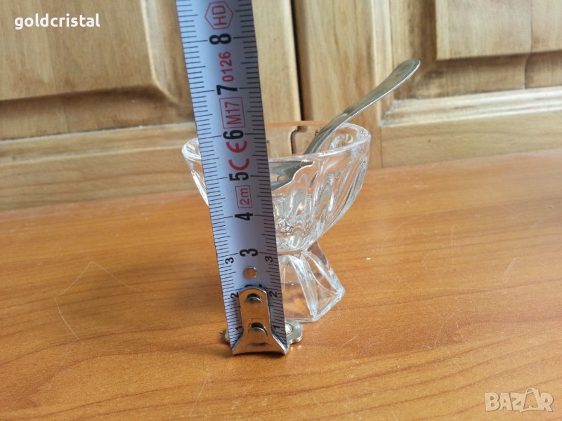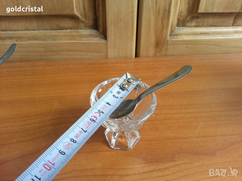 Кристален съд с лъжичка за сервиране на хайвер сладко или друго ретро арт декор винтидж колекция стари старинни антикварни предмети обзавеждане за дома и семейството подходящ за подарък за ценители и колекционери