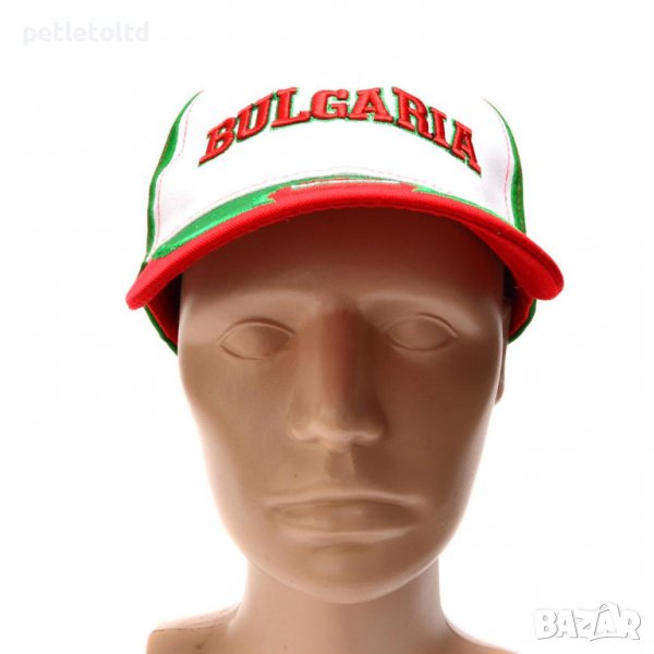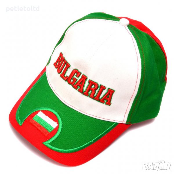 Шапка с козирка, декорирана с цветовете на българския трикольор и надпис BULGARIA → Обява 36839169