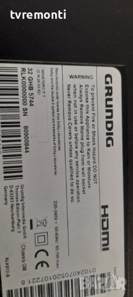 MAIN BOARD VPZ190R-5 for 32 inc DISPLAY Grundig 32GHB5744 борда е гарантирано работещ Демонтиран от телевизор Grundig модел 32GHB5744 със счупен дисплей 057E32-C62 тествана от нашия техник