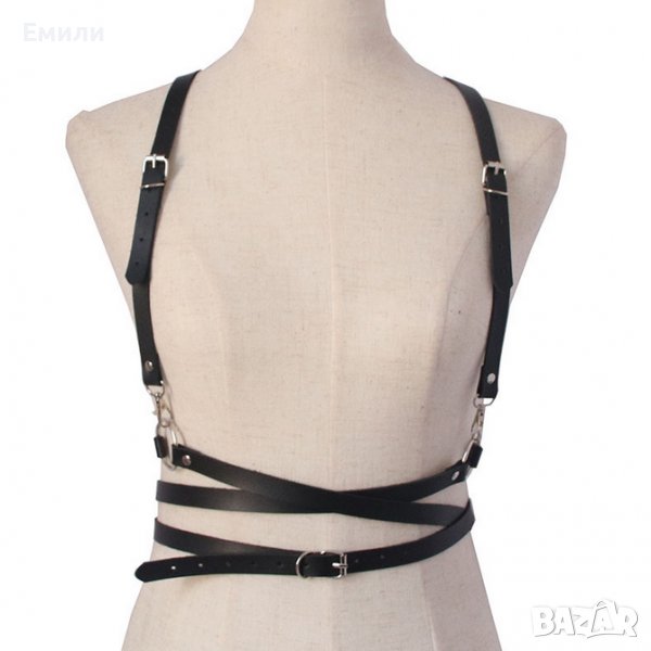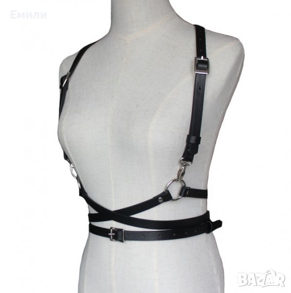 Кожен аксесоар за тяло с халки и катарами в BDSM стил