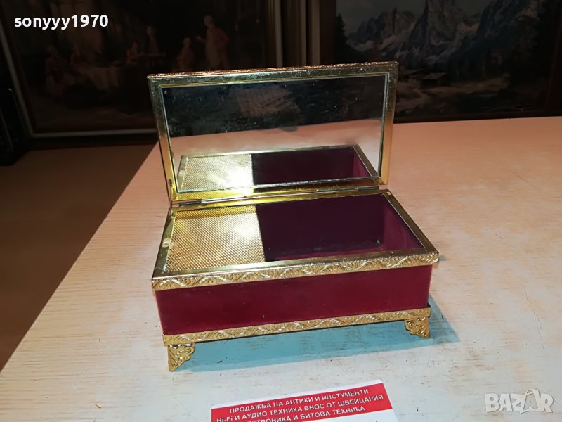 ЗЛАТНА МУЗИКАЛНА КУТИЯ ОТ АНГЛИЯ-15Х9Х9СМ-КЛАСА И СТИЛ ОТ АНГЛИЯ-ЦВЯТ ЗЛАТО С ОГЛЕДАЛО И СТРАХОТНА МЕЛОДИЯ-МЕК ЧЕРВЕН ПЛЮШ-от днес 28.02.22г пращаме със спиди или еконт с преглед и тест след превод на капаро за куриерската услуга поради зачестили некоректни потребители-поръчки само в тук в саита! по телефона и със смс не! краини цени! бартери не правиме! всеки ден нови неща-още 2-3 наши обяви тук