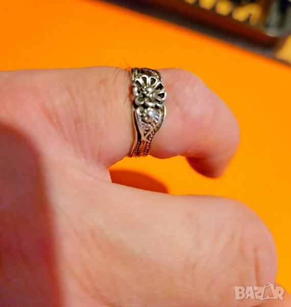 Старинен дамски сребърен пръстен с цвете - филигран - красота за твоята ръка .