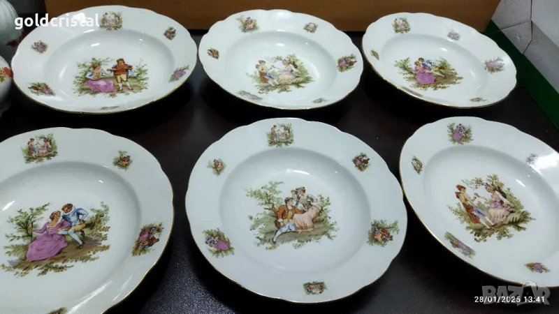 за основно 6бр-150лв дълбоки 6бр-150лв сосиера 40лв неизползвани сервиз комплект сет лот ретро арт декор винтидж колекция старинни антикварни предмети обзавеждане за дома и семейството подходящи за подарък за ценители и колекционери