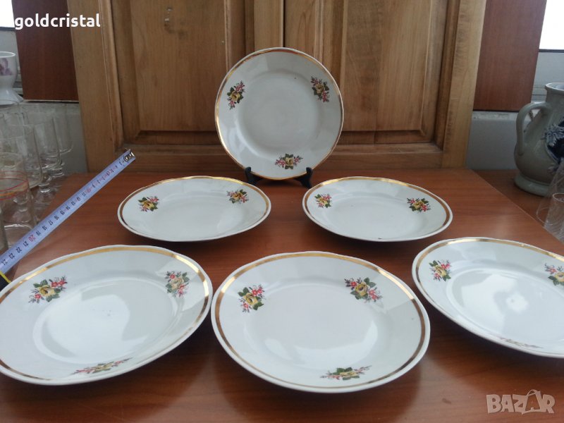 Руски порцелан десертни чинии чинийки 6 бр-39 € две чинии имат фабрична точка има и пълен сервиз за чай 6чаши с чинийки чайник захарница латиера 250лв сервиз комплект сет лот ретро арт декор винтидж колекция стари антикварни предмети обзавеждане за дома и семейството подходящи за подарък за ценители и колекционери
