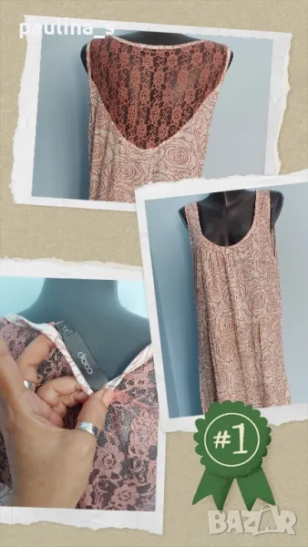 2️⃣. Колаж / XL / 3XL - Нова маркова рокля на рози "Coop". Цената е крайна 29,99лв / 15 евро. Дантелата е цвят Пепел от рози; нова, памучно трико, голям размер от XL до 3XL с леко вталяване.