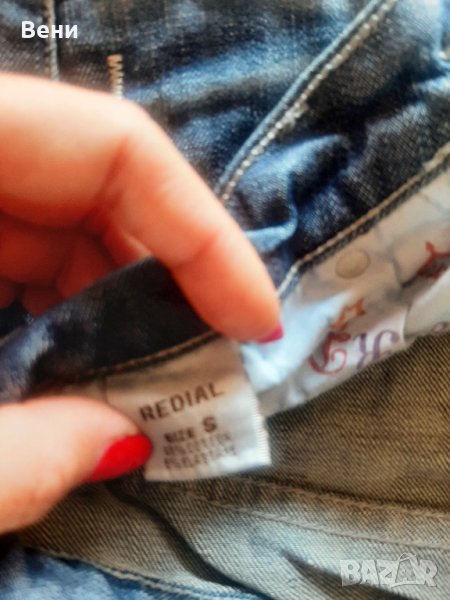 Дамски дънки с намачкан ефект.По етикет са размер S,но отговарят на размер 27.
