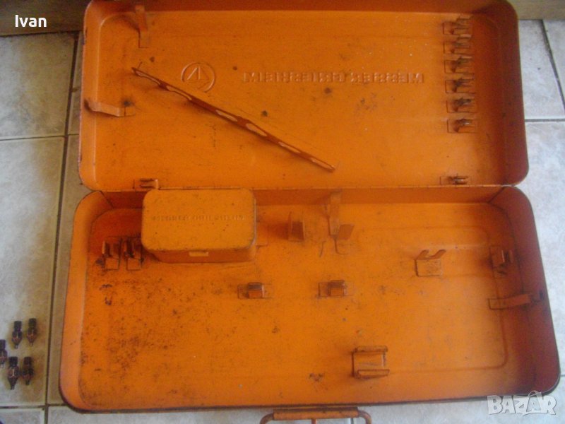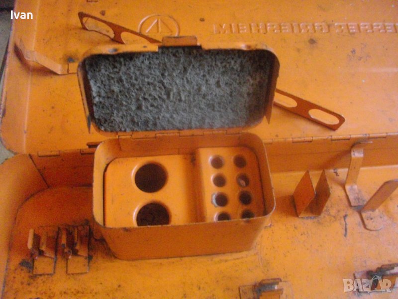 Вътре е с вградени вложки ца различни компоненти и с метална вградена кутия за дюзи с метален капак и лого на марката.
