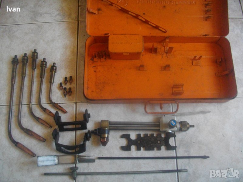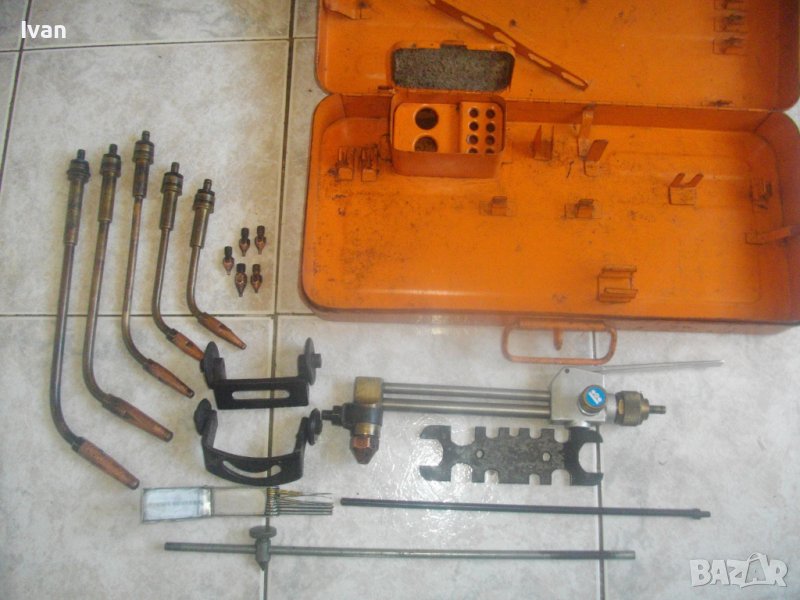 Масивен, голям професионален комплект заваръчна горелка с накрайници и контактни дюзи различен размер, професионално оригинално холандско производство на професионална марка за инструменти на газо-кислородно заваряване/запояване/рязане..