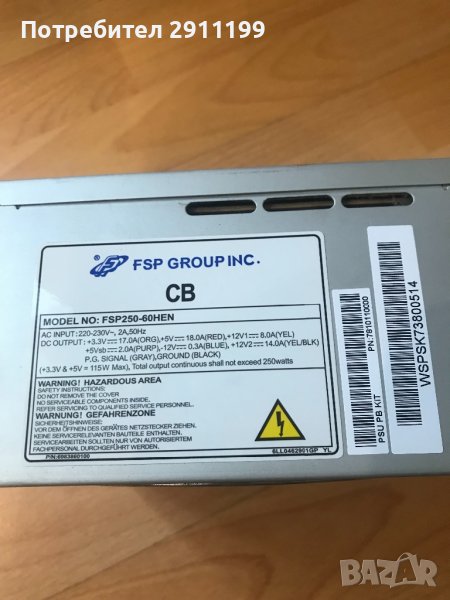 При покупка над 100лв. от профила ми е подарък, само ми кажете, че го искате. Захранващ модул за компютър , модел FSP250-60HEN. Захранването работи, моля вижте снимките за повече детайли.