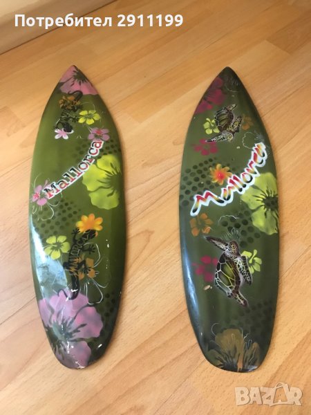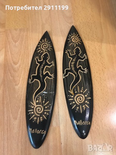 При покупка над 150лв. от профила ми са подарък, само ми кажете, че ги искате.Комплект дървени сувенири от Майорка, във формата на табла за сърф. Цената е за всичките.