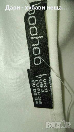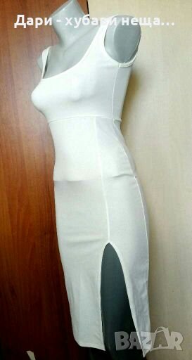 Стилна рокля в млечно бял цвят.Има еластичност до S р-р.Материята е полиестер, който на допир наподобява жоржет(стои леко зърнест).Подходяща е за повод, клуб или разходка, както и за подарък.Мога да предлижа и връхна дреха.