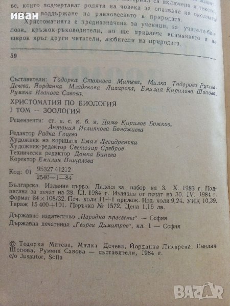 Христоматия по Биология/Зоология том 1/ - Т.Митева,М.Дечева,Й.Лихарска,Е.Шопова,Р.Савова - 1984г. → Обява 36855204