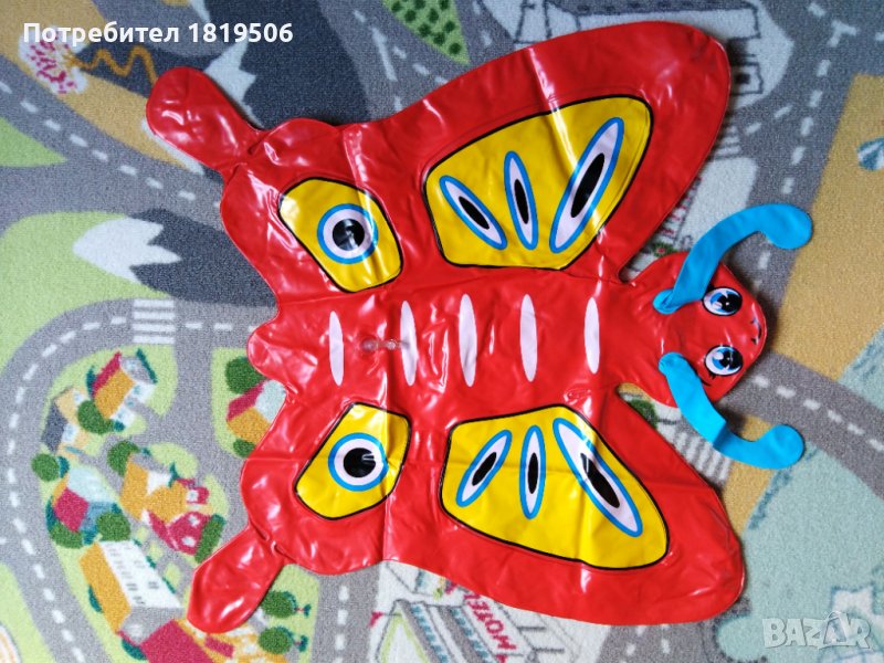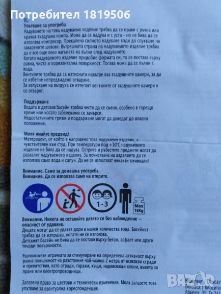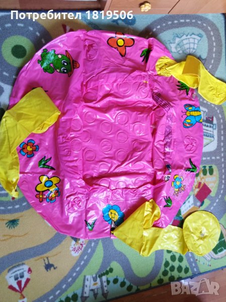 басейна е използван и забележката е , че два от жълтите държача са се отделили, както се вижда на снимката, но след като се надуе басейна те се изправят и може да се постави надуваемата пеперуда