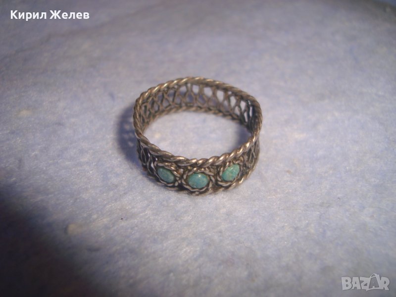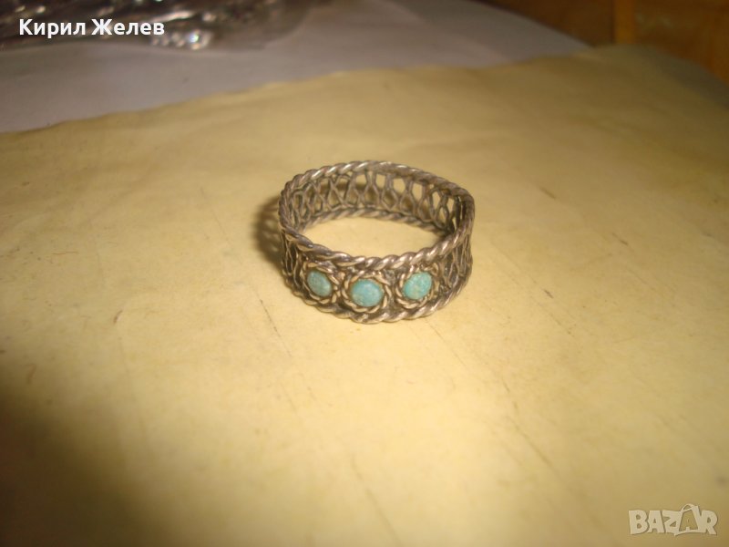 СТАРИНЕН ВЪЗРОЖДЕНСКИ ТЮРКОАЗЕН СРЕБЪРЕН ПРЪСТЕН РЪЧНА ФИЛИГРАННА ИЗРАБОТКА РЯДЪК 27300
