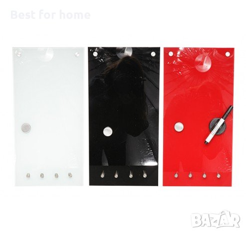 Магнитна стъклена дъска с вкл. магнити маркери и закачалки за ключове и аксесоари 40* 20 см от Cosy & Trendy