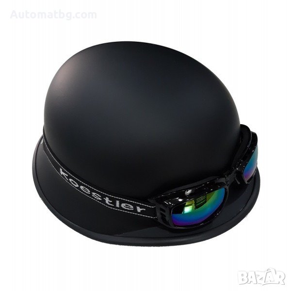 Каска с очила Automat, Ретро каска, Каска за мотор, Мотопед, Черна.