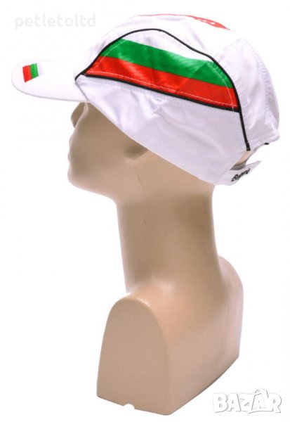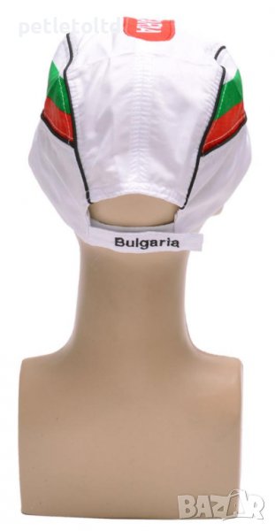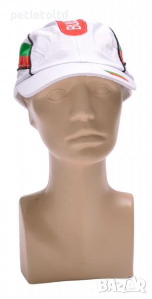 Шапка с козирка, декорирана с цветовете на българското знаме и надпис - България. Регулируема лента