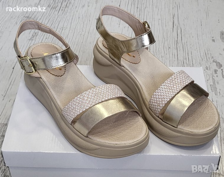 Български сандали от естествена кожа в златист цвят