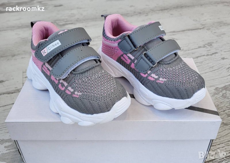 Детски маратонки с велкро в сиво и розово