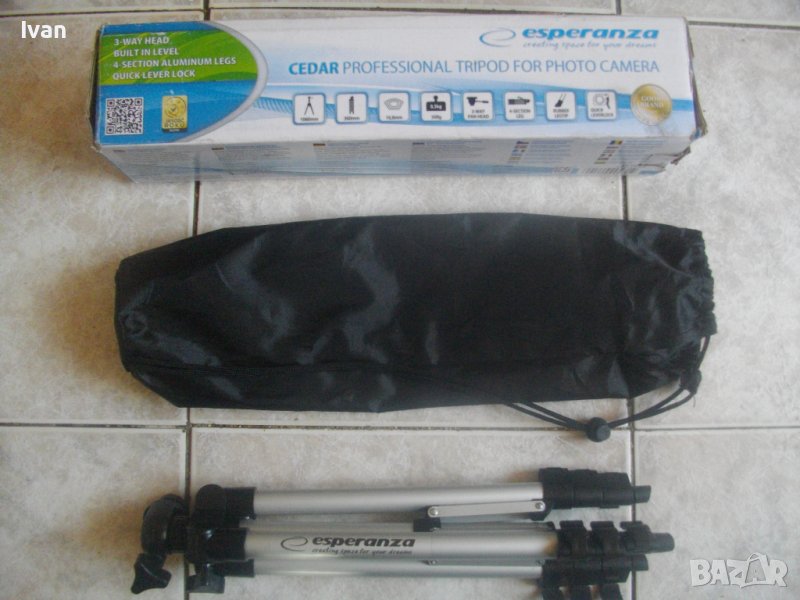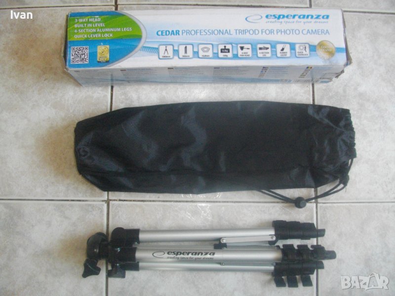 Статива е PROFESSIONAL TRINOGA FOR FOTO CAMERA - упоменато на фабричната му опаковка.