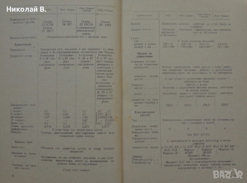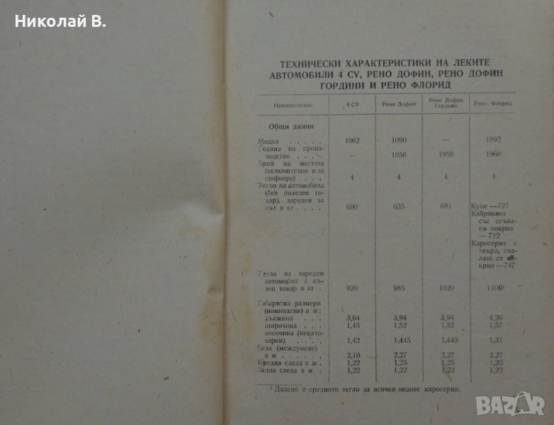 Продавам употребявана но запазена книга за ретро автомобили Рено София 1960 год. Експлуатация и поддържане на автомобили Рено има данни за Рено 4CV, Дуфин, Дуфин Гордини, Флорид, Съдържа 72 страници Състоянието и е видно от снимките.