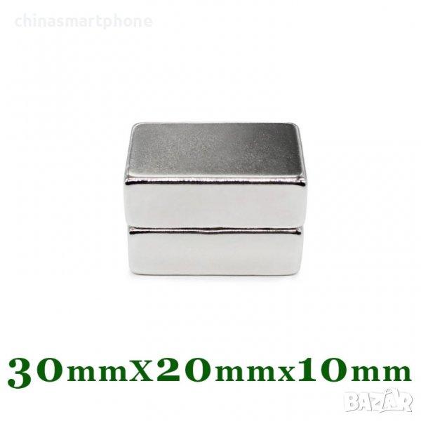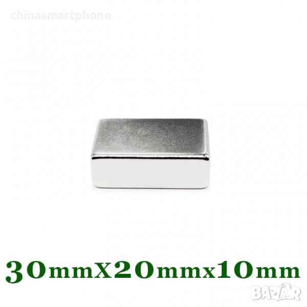Неодимов магнит 30x20x10mm N52 3200-3700Gs 95гр правоъгълен | moqtmagazin.com
