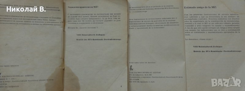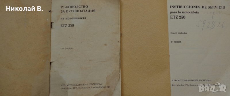 Книги инструкция за експлуатация на МЗ ЕТЗ 250 на Български и Испански → Обява 36872474