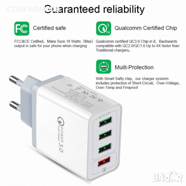 С този 4 портов Quick Charge 3.0 получавате бързо и качествено зареждане, без опасност от повреда на батерията.
