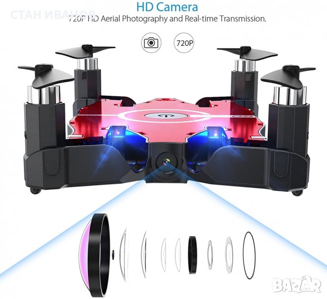 Сгъваем и бюджетен мини дрон HOSHI T49 с 2MP камера, който с едно натискане придобива компактен размер.