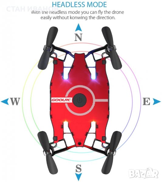 гладка, само с едно натискане краката автоматично изскачат. Дронът се отличава