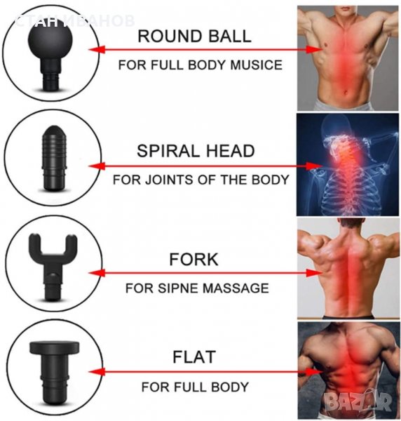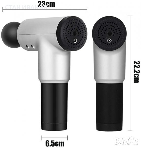 Масажерът е направен в ергономична форма под формата на пистолет, той
