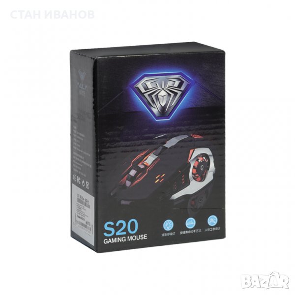 Геймърска мишка Aula S20, Оптична, 6D, RGB, Черен, снимка 1 - Клавиатури и мишки - 36874438 Геймърска мишка Aula S20, Оптична, 6D, RGB, Черен, снимка 2 - Клавиатури и мишки - 36874438 Геймърска мишка Aula S20, Оптична, 6D, RGB, Черен, снимка 3 - Клавиатури и мишки - 36874438 1/3