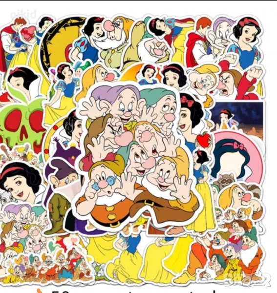 50 бр Снежанка и Седемте Джуджета самозалепващи лепенки стикери за украса декор → Обява 36876908