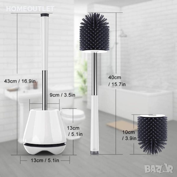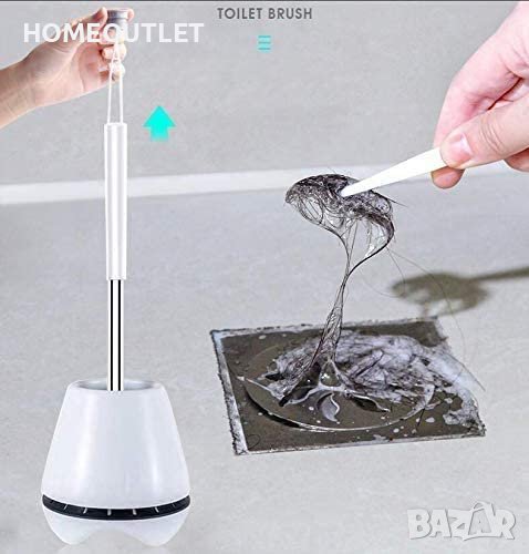 Главата на четката е изработена от TPR (термопластичен каучук), който е изключително гъвкав и издръжлив, улавяйки с лекота и без усилия мръсотията, като не се износва, не абсорбира мръсотията от тоалетната и не деформира формата си.