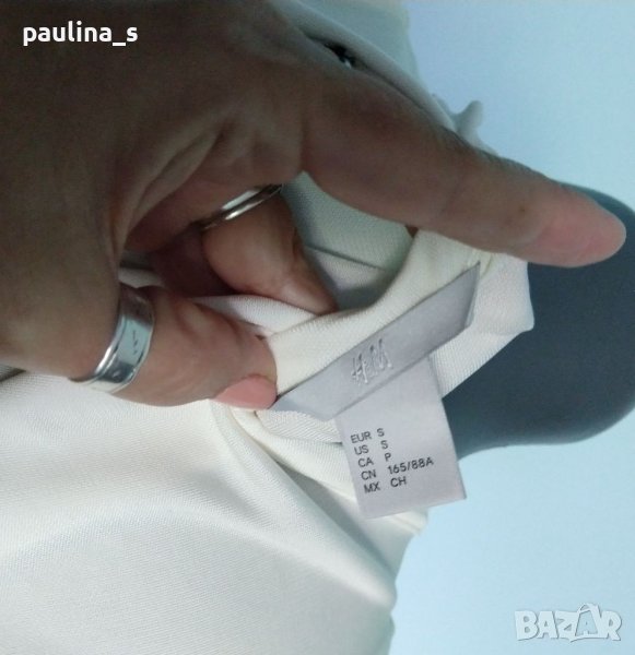 1️⃣ . Кремав топ тип туника от вискозна коприна с декорирано бие "H&M" и издължена задна част / като нова, много еластична и покрива няколко размера от S до 2XL / цена 9,99лв / 5 евро.