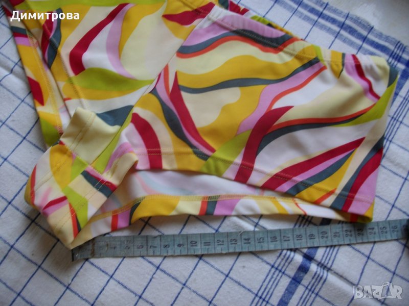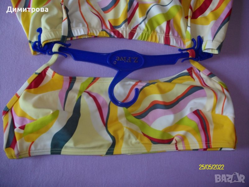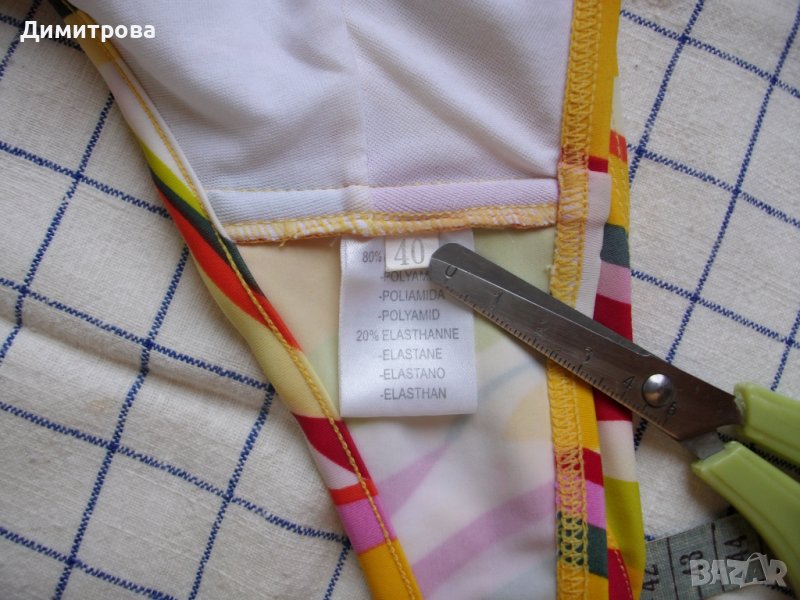 Продавам чисто нови дамски бански половинки, номер 40, отговаря на размер М. Налични общо 3 комплекта. Преливащи се цветове, които създават ведро и слънчево лятно настроение - разгледайте снимките. Подгответе се за плажа и лятната почивка с нашите висококачествени бански. Състав: 80 % полиамид, 20 % еластан.