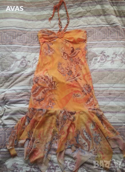 Лятна оранжева рокля с връзки L размер → Обява 36880536