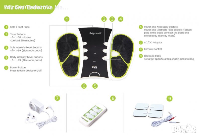 Ems масажор за крака с 99 нива на интензитет - нашият масажор за крака за циркулация използва EMS (Електрическа мускулна стимулация) технология, за да помогне за енергизиране на краката ви. Нашият клинично доказан циркулационен масажор за крака също се предлага с 4 допълнителни електродни гел подложки, които помагат за увеличаване на циркулацията в други части на тялото, като кръста, бедрата, ръцете, раменете и долната част на гърба. Персонализирайте вашите тренировъчни планове навсякъде и по всяко време с нашия масажор за циркулация на краката.