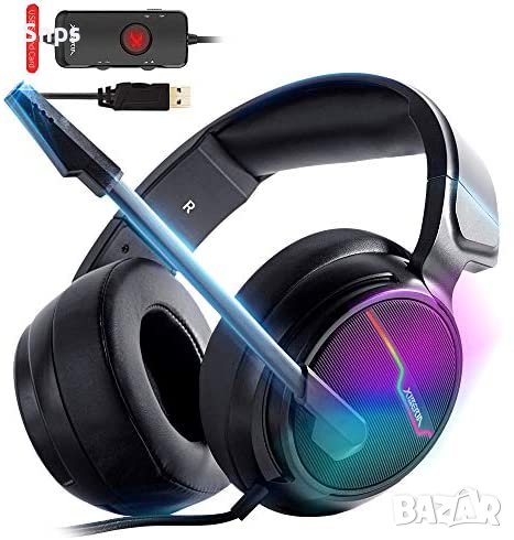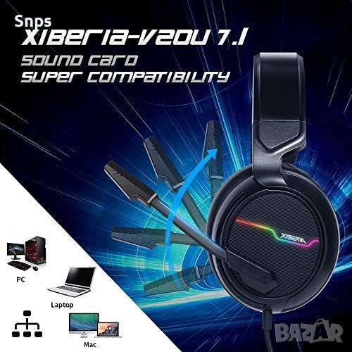 【Съвместимост с няколко платформи】: XIBERIA V20 USB слушалки с USB щепсел, съвместими с компютър, лаптоп, Mac устройства. Xiberia V20 USB модел може да се използва за PS4 конзолна връзка, но не и за PS4 контролери и Xbox One устройство: софтуерните драйвери са лесни за изтегляне и инсталиране за 7.1 съраунд звук (как да изтегля 7.1 драйвери?). Изтеглете драйвер за 7.1: 【www.jeecoo.com/category/21.html】7.1 виртуален съраунд звук и микрофон с шумопотискане: 50 мм драйвер неодимови магнити, вградена USB аудио звукова карта със 7.1 съраунд звук; всички звукови ефекти и детайли на играта идват в ушите ви и осигуряват потапящо игрово изживяване. Персонализираният еднопосочен микрофон на XIBERIA намалява околния шум за подобрено качество на гласа, за да записва гласа ви ясно и силно, лесен за включване и изключване. Регулируема сила на звука на микрофонаПрофесионални слушалки за игри и преливащи LED светлини: 7.1 технология за съраунд звук осигурява висококачествен стерео звук. Перфектно подобряване на чистотата на звука. Контролът на силата на звука и превключвателят за заглушаване на микрофона позволяват лесно управление на силата на звука. Това са слушалки за любителите на игрите. Висококачествени звукови ефекти и микрофон, перфектно улавят гласа на потребителя, като същевременно елиминират нежелания фонов шум.【МНОГОФУНКЦИОНАЛЕН И УДОБЕН КОНТРОЛЕР】 Игрални слушалки с вграден контролер: контрол на силата на звука, контрол на силата на звука на микрофона, микрофон вкл./изкл., RGT светлина ВКЛ./ИЗКЛ. Има щипка, за да можете да я прикрепите към тениската си за удобно управление.