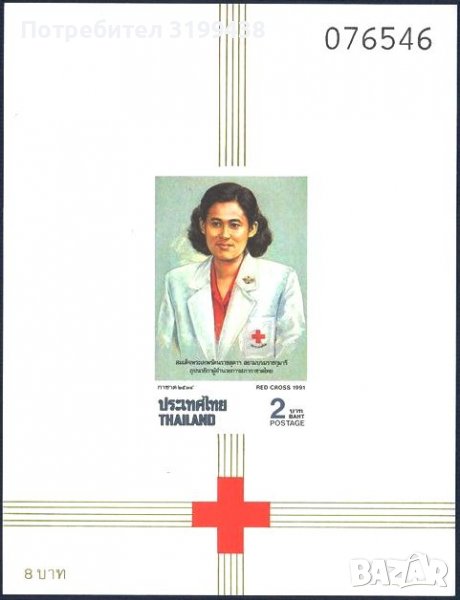 Чист блок неперфориран Червен Кръст 1991 от Тайланд.