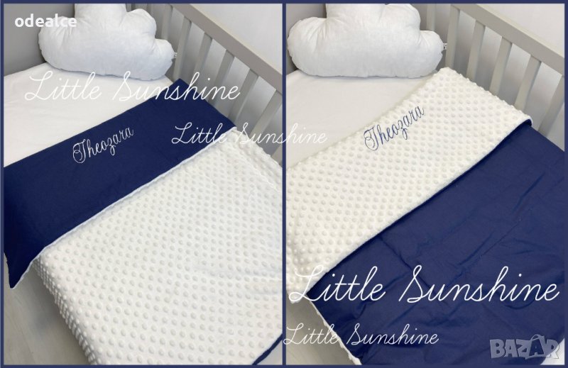Одеялцето е комбинирано от прекрасната Минки материя, която е много нежна и мекичка от едната страна и 100% памучна материя от другата. (висококачествен сертифициран ранфорс) с мноооооожество цветове, от които да изберете.