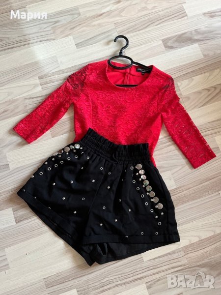 Страхотен лот от къси панталонки с висока талия С и риза Madness -XS , стоят страхотно