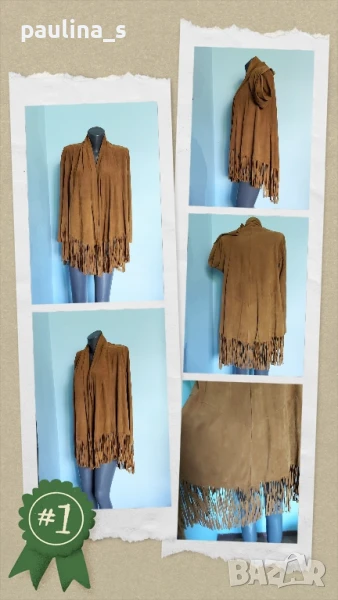 2️⃣. Колаж / L / XL - "Unbranded". Цената е крайна 159,99лв / 80 евро. Манто / Болеро / Наметка от естествена набук (напа, велур). Дрехата е много ефектна, много прецизно изработена, впечатлителна и красива. Може да се носи и като туника, и като допълнение към всички тоалети. Пада тежко, прикрива недостатъци изглежда скъпо и елегантно, точно каквато е! Една бройка, без дефекти и етикет - Unbranded!