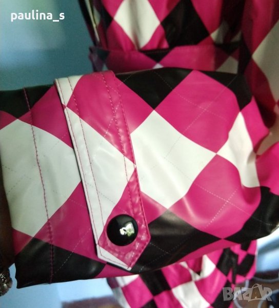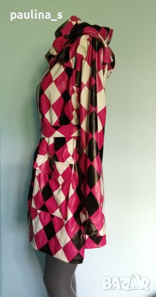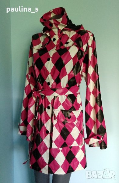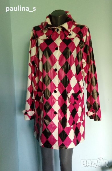 дъждобран модел кардиган. Материята е мека и леко еластична импрегнирана ликра - като мушама, а качулката може да се махне. Весела дреха за мрачно време, дреха с настроение и в ирландско каре. Дрехата е нова.