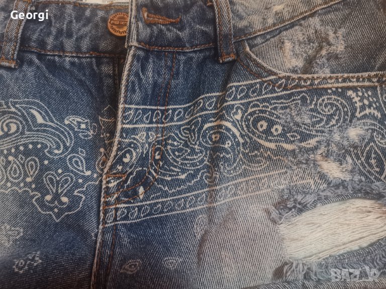 Къси дънкови панталонки с рисунки и надран ефект. Без забележка! Размер XS.