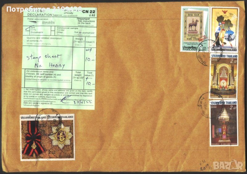 Пътувал плик с марки Кралят Златен юбилей 1996 от Тайланд.