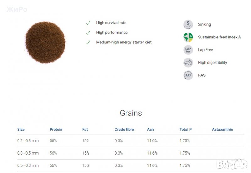 ADVANCE е висококачествена пълноценна гранулирана диета. Този гранулат се предлага в няколко размера, така че могат да се хранят както малки, така и по-големи риби. Богата на протеини, позволяващи добър растеж, а също така съдържа балансиран профил на аминокиселини и мастни киселини.